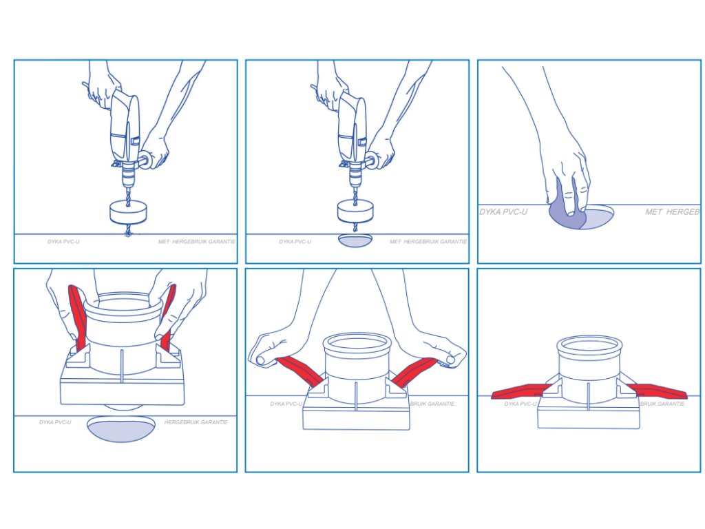 Průměr vrtáku pro montáž 159mm. Na stávajícím kanalizačním řadu si označte místo napojení minimálně 30 cm od hrdel a vyvrtejte otvor.